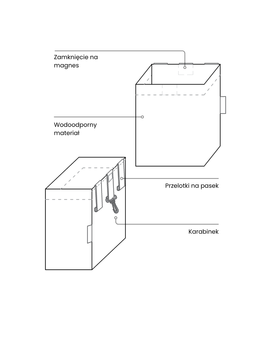 Materiał główny: Kodura (100% poliester) z wykończeniem PVC – trwała, wodoodporna i łatwa w czyszczeniu.