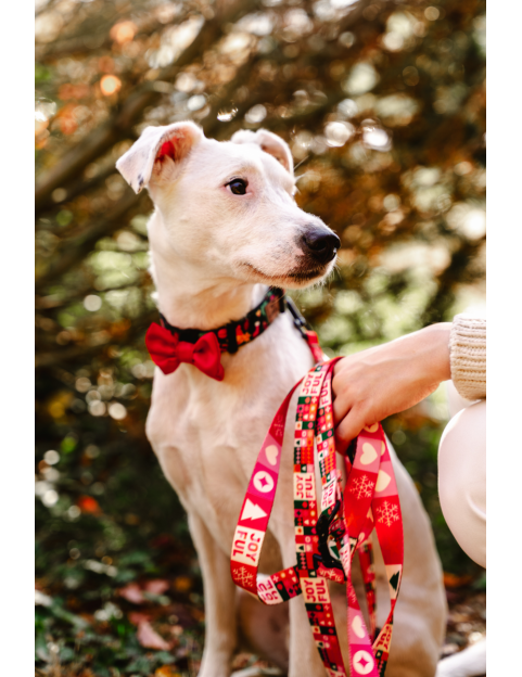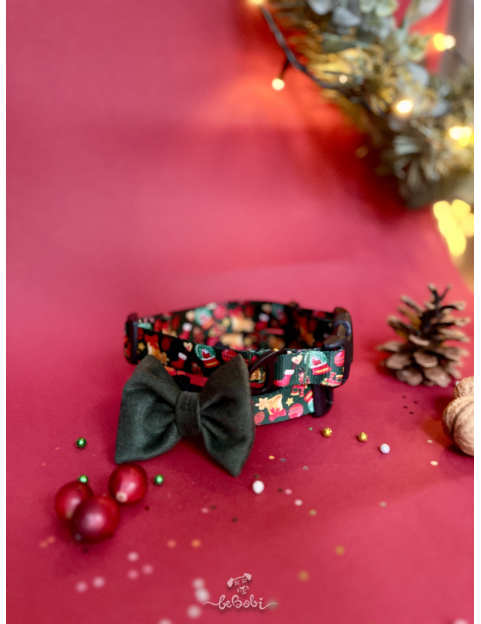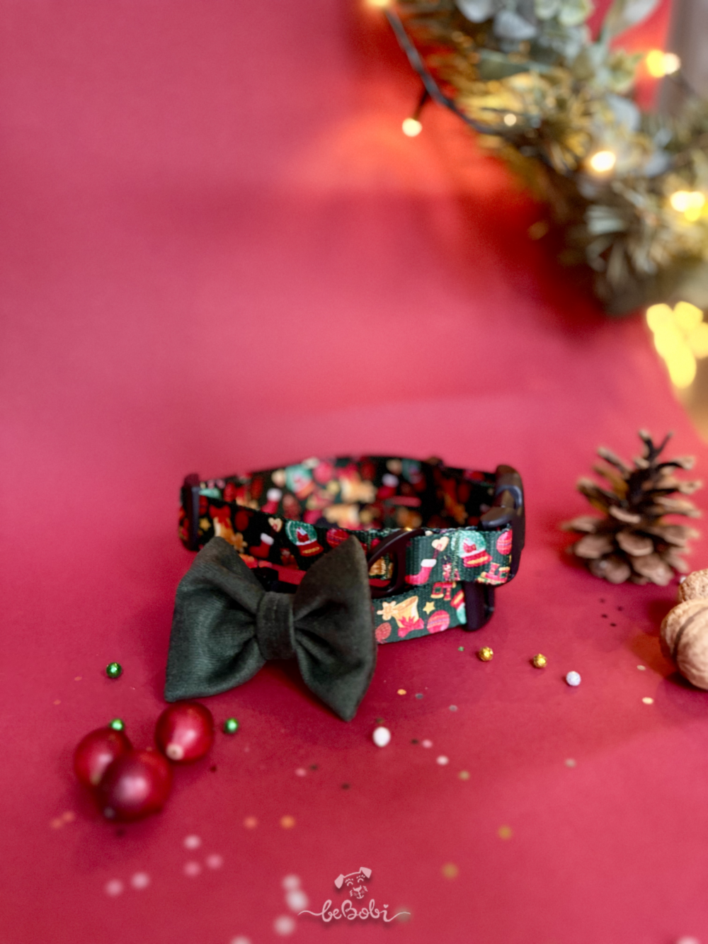 Wprowadź ciepły, świąteczny klimat do wyglądu swojego psa dzięki tej uroczystej obroży z muszką!