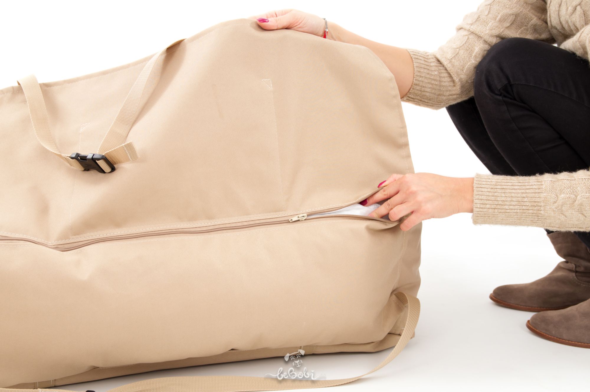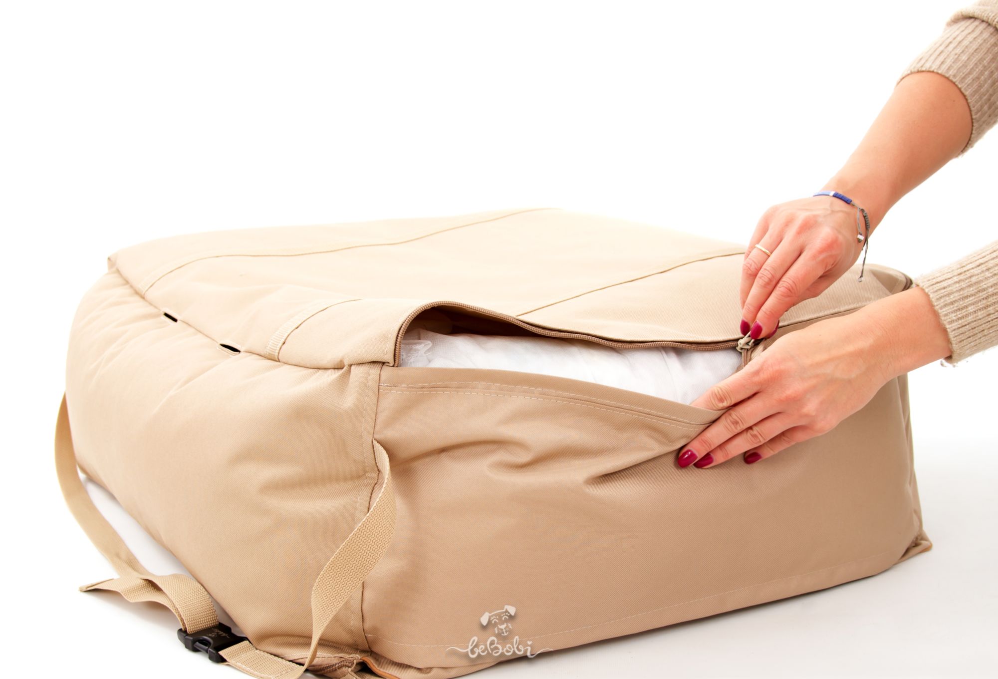 Bottom: Cordura (100% polyester) with a PVC coating – durable, waterproof, and easy to clean.
